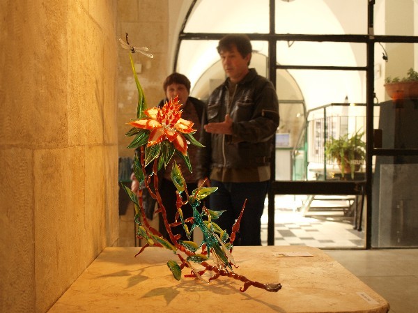 Выставка стекла проходит в Доме художников в Иерусалиме. Дом художников — это очень обобщенный перевод с иврита его настоящего названия. Его дословное значение — бэйт от амуцар. Бэйт — это дом, от — буква, знак, муцар — это продукт, изделие, а — это как the в английском (конкретизирует слово). Если позволить себе соединить в принципе не соединяемые ментальности прошлого советского бытия и нынешнего, процветающего в художественном плане, израильского общества, то получится — дом изделий со знаком качества.