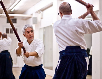 Масами Шиода держит большую, обернутую в кожу бамбуковую палку. Он стоит напротив Вернона Чарча, 48-летнего программиста, который держит такую же палку. Когда палки ударяются друг о друга, то дрожит пол, так как при каждом ударе или выпаде они топают ногами. Гортанные звуки, удары, ломанный английский язык с японским акцентом, — все это напоминает сцены из старого фильма о кунг-фу. Повторяются минуты покоя после каждой серии наступательных и оборонительных приемов, пока противники не начинают атаковать снова.