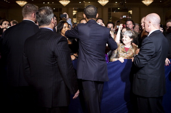 На встрече Обама также встретился со своими сторонниками. Он обсудил вопросы, касающиеся федерального бюджета и образования в стране. Во время выступления его охраняли агенты Секретной службы США.