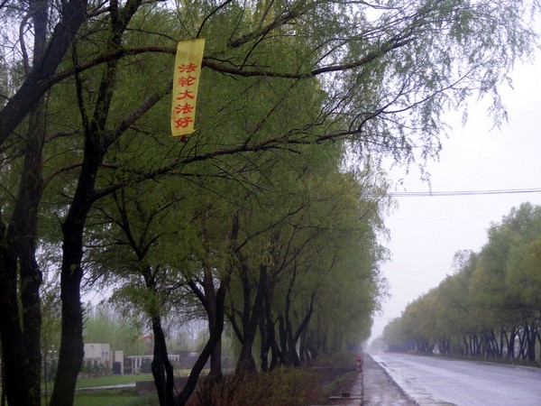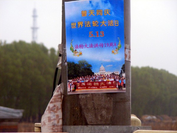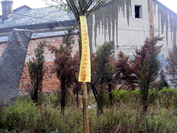 Фоторепортаж. В одном из городов северо-восточного Китая появилось множество жёлтых транспарантов, посвящённых Всемирному Дню Фалунь Дафа (Фалуньгун*) и дню рождения основателя этой духовной практики, мастера Ли Хунчжи, который отмечается 13 мая.