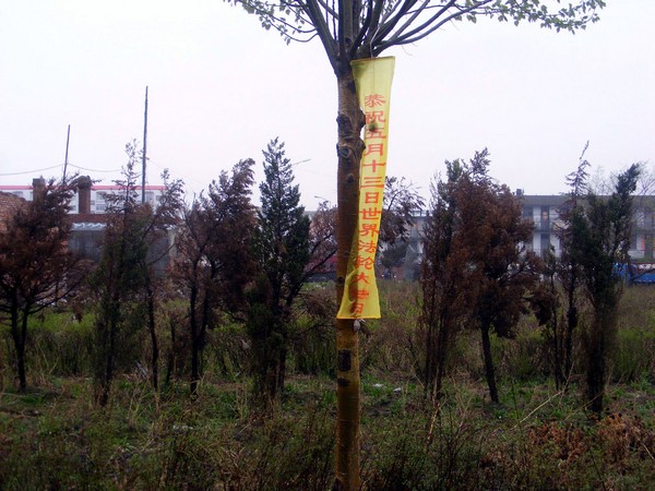 Подобные транспаранты появляются каждый год во многих городах Китая. Местные последователи Фалуньгун вывешивают их, рискуя быть арестованными, избитыми и приговорёнными к нескольким годам заключения.