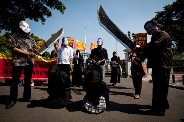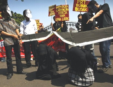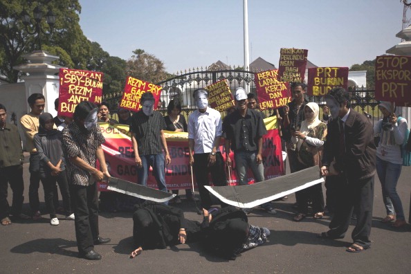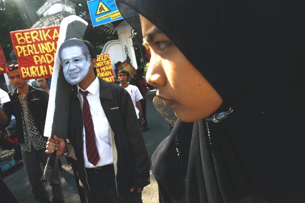Фоторепортаж. В Джакарте 24 июня состоялась демонстрация перед президентским дворцом. Протестующие обвиняли правительство в неспособности защитить права своих рабочих-мигрантов. Гнев демонстрантов вызвало недавнее вынесение смертного приговора индонезийской горничной в Саудовской Аравии.