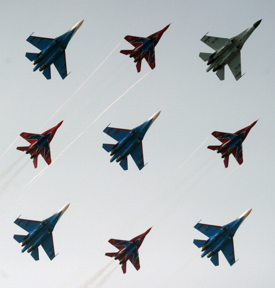 В открывюшемся международном шоу также будут участвовать самолеты-демонстраторы США, Франции и Италии. Лучшие летчики-испытатели России покажут полеты на самых современных отечественных истребителях и гражданских самолетах.