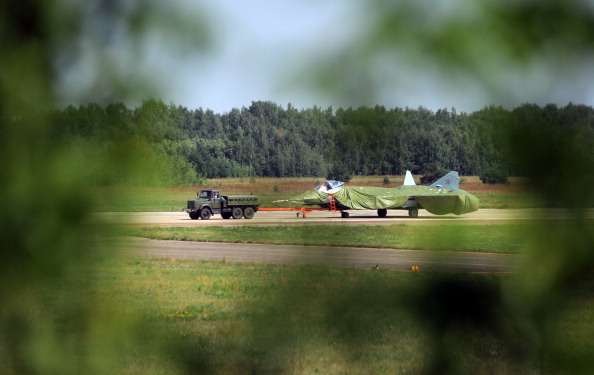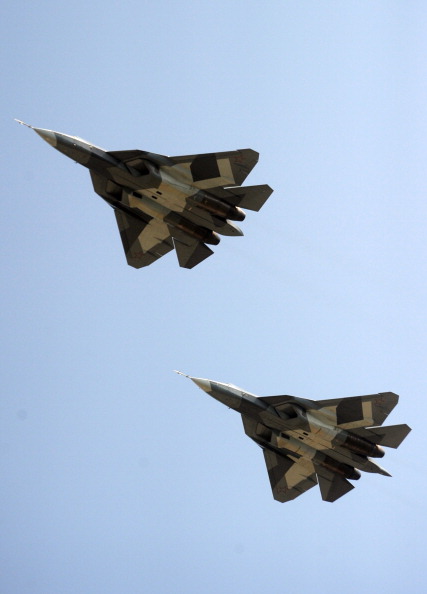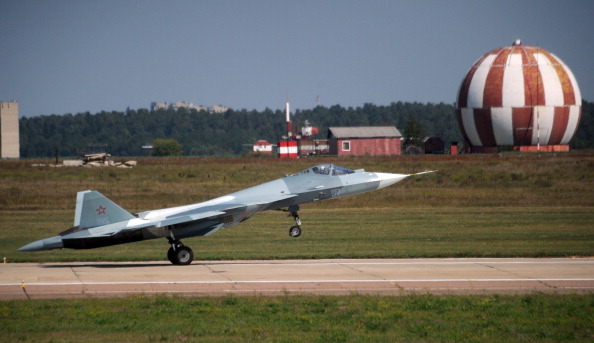 Вместе с пилотажными группами : «Русские Витязи», «Соколы России», «Стрижи», и «Русь» принимал участие новый русский двухмоторный реактивный истребитель Т-50.