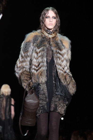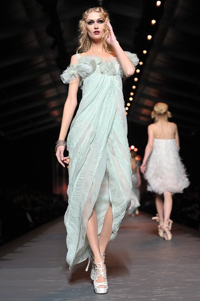 Gucci и Max Azria. Можно попробовать забрать назад широкую прядь волос со лба,