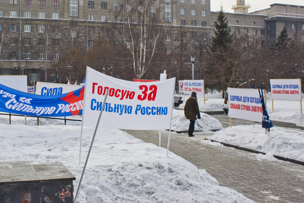 Удивило отсутствие на митинге представителей партии, выдвинувшей Владимира Путина в президенты. «Единая Россия» исчезает с арены предвыборной борьбы, уступая свое место пока ещё мифической «Сильной России».