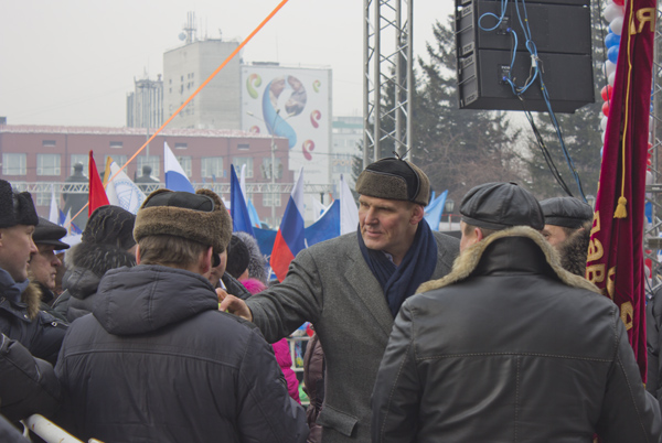 Для проведения митинга были задействованы мощные административные ресурсы: около 20 автобусов, припаркованных вдоль площади Ленина, концертная аппаратура, сцена с освещением, два автобуса областного телевидения, полевые кухни, ограждения из нержавеющей стали с комплектующими, милиция с металлоискателями на подходах.
