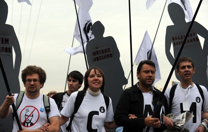 Участники марша несли лозунги «Россия без Путина», «Россия будет свободной», «Мы здесь власть», «Медицина должна быть бесплатной» и «Профсоюз — не преступление!».