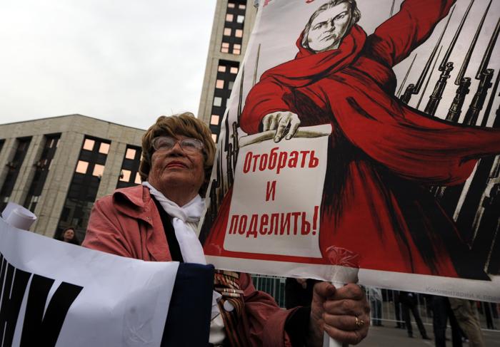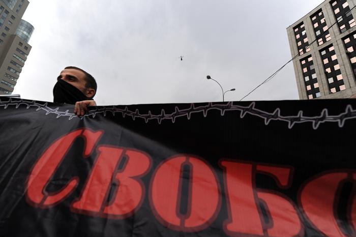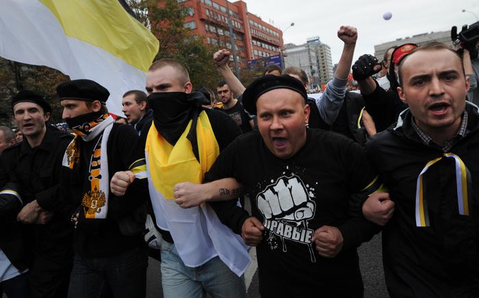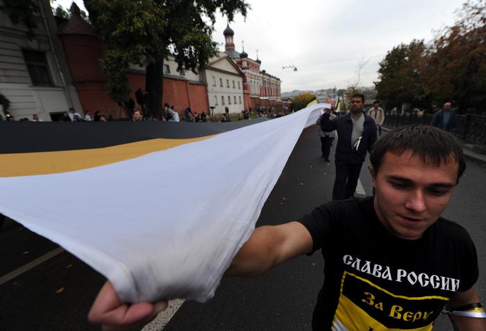 В общей колонне также шли националисты с лозунгами «Слава России» и «Русские вперёд».