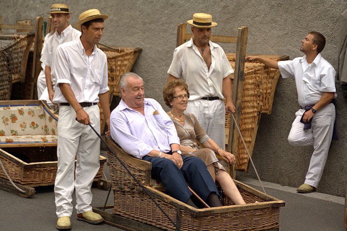 Управляющие санками Carreiros, в белых одеждах, круглых соломенных шляпах и кожаных ботинках с особой подошвой, умело обходятся с плетёными санями. В таком сопровождении можно надеяться при большой скорости, крутых поворотах и узких улочках добраться в Фуншал в целости и сохранности. Говорят, что сани развивают скорость до 48 км/ч.