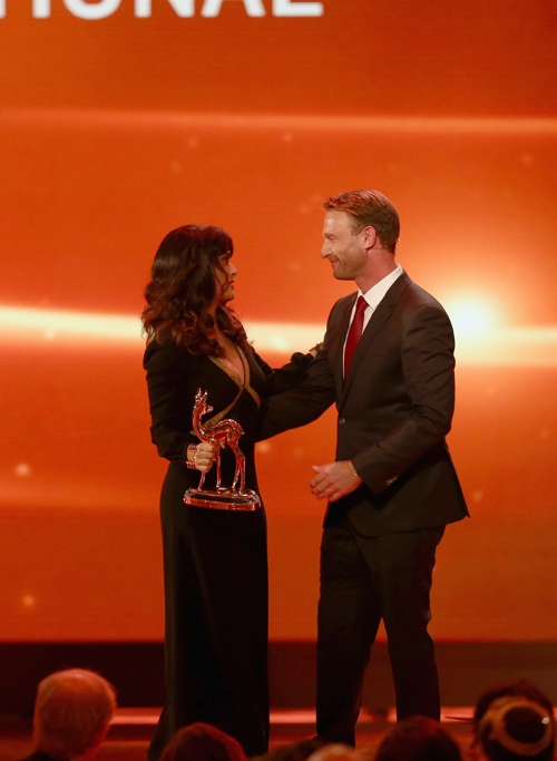 Фоторепортаж. На церемонии награждения Bambi Awards 2012, состоявшейся в Stadthalle Duesseldorf 22 ноября 2012 года в Дюссельдорфе, Германия, золотую статуэтку оленёнка Bambi получила Сальма Хайек за актёрскую работу в международных кинопроектах. Сальма стала первой латиноамериканской актрисой, награждённой этой премией.