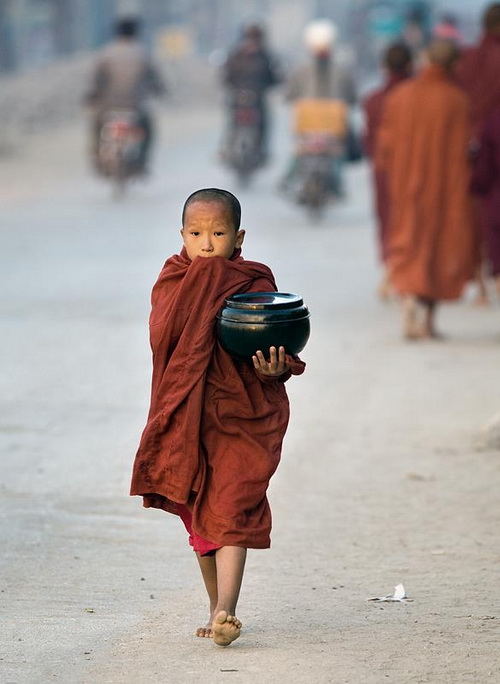Многие семьи из-за бедности отдают второго ребёнка в монастырь, так как в монастыре легче прокормиться. У монахов есть горшочки для подаяния, и каждое утро они идут собирать себе пропитание, и это не считается зазорным, наоборот — из домов им выносят рис, соус, немного овощей и с благодарностью подают им… Ведь среди них может оказаться чей-то сын или дочь, не здесь, так среди монахов в другом городе. Собранного риса им должно хватить на весь день, а монастырь предоставляет монахам только крышу над головой и обучает их.