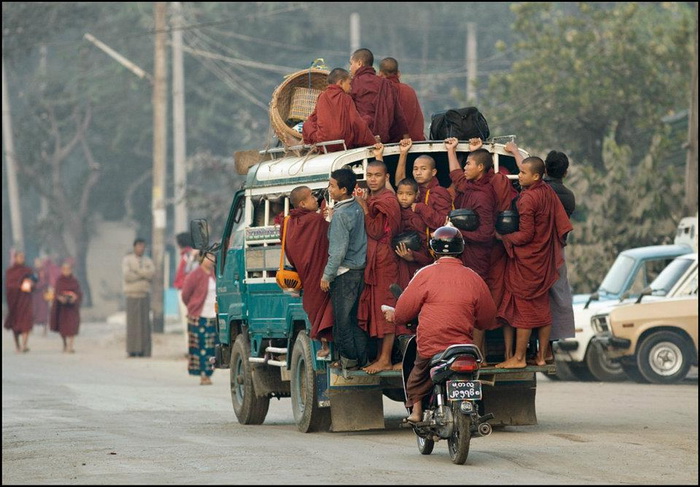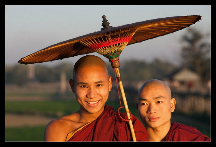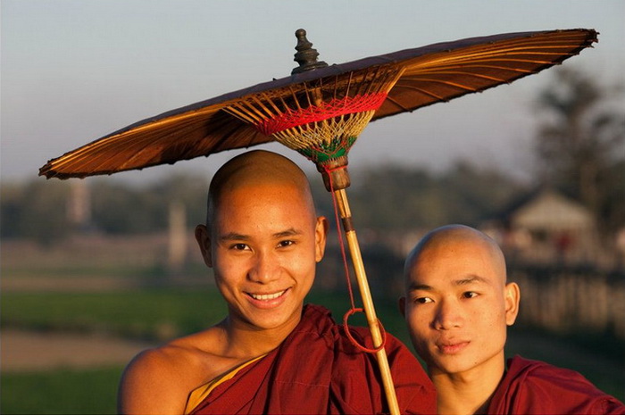 В Мьянме бросается в глаза большое количество монахов. Например, в городе Амарапура расположены древние монастыри, и общая численность монахов, проживающих в них, достигает 50 000. Каждый ребёнок (лет с 7-8), каждый гражданин Мьянмы должен как минимум один раз побыть какое-то время монахом. Для семьи, чьи дети идут в монастырь, это большое событие и праздник. Ребёнка одевают в нарядный костюм «принца» (ведь Будда родился принцем), осыпают ребёнка цветами и везут на украшенной машине в монастырь под громкую музыку и сигналы машин — всё это напоминает свадебный кортеж. В монастыре ребёнок снимает одежду «принца», его наголо стригут и облачают в бордовую тогу — он становится монахом.
