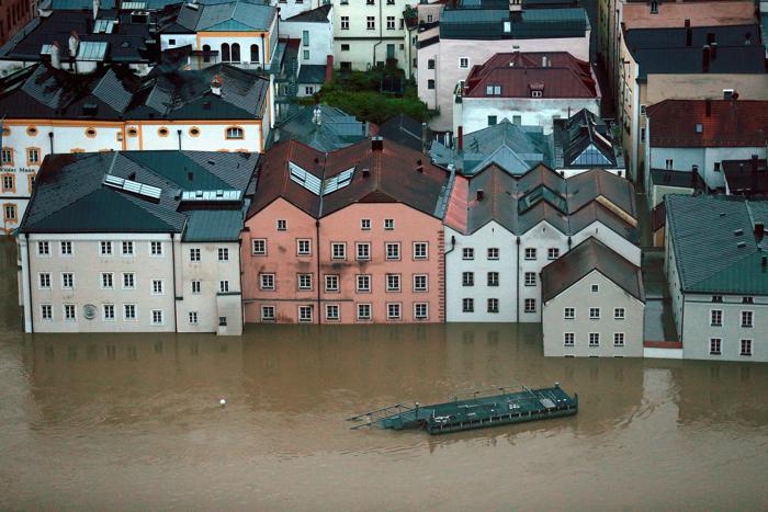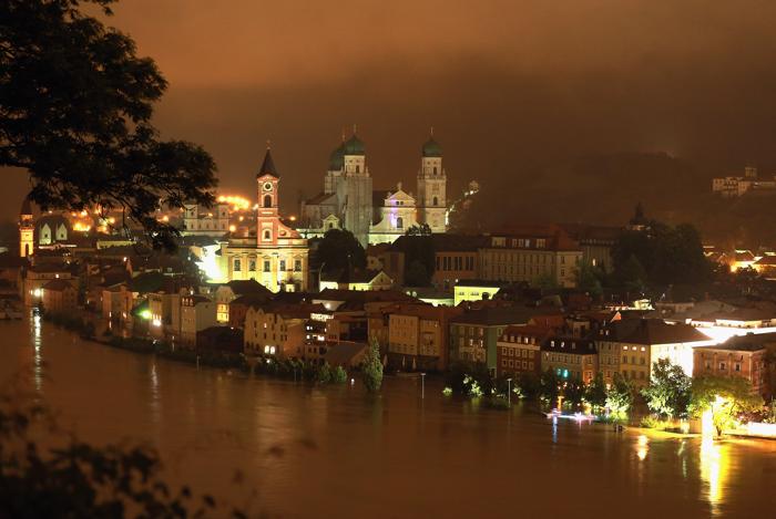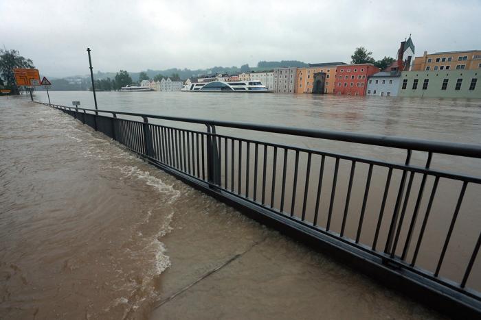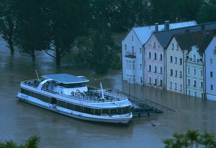 Как утверждают метеорологи в этом году наводнение в Германии может быть разрушительнее 2002 года, такие наводнения бывают раз в сто лет. Вода в реках Дунай и Эльба стремительно растёт. В баварском городе Пассау, находящемся на слиянии 3 рек, затоплен весь центр города, уровень воды приблизился к рекордному. На помощь жителям направлены военные.