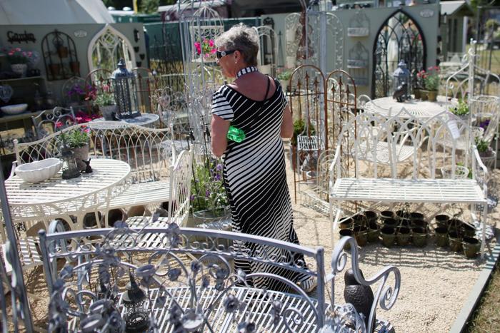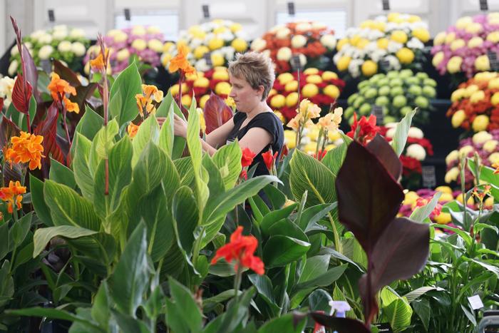 Помимо цветов на выставке можно приобрести необходимый садовый инвентарь, парковые скульптуры и растения.