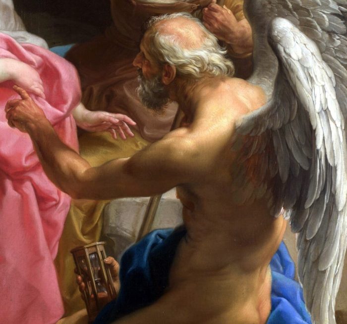 Деталь картины Помпео Батони «Время приказывает старости уничтожить красоту», около 1746 года. Холст, масло, 133 см на 96 см. Национальная галерея, Лондон. (Общественное достояние)