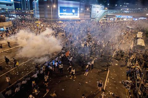Демонстранты расходятся после применения слезоточивого газа во время протестов в Гонконге 28 сентября 2014 года. Фото: Anthony Kwan/Getty Images