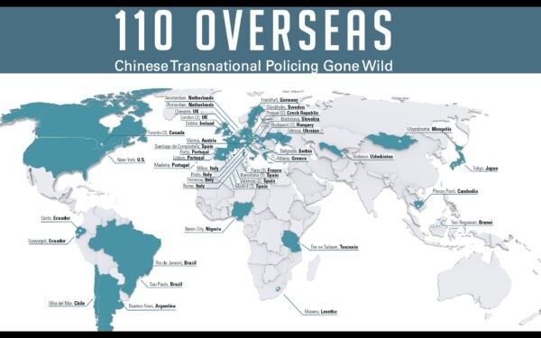 Зарубежные «полицейские служебные участки» китайской полиции, или «110 зарубежных участков полиции», находятся в десятках стран на пяти континентах. (Любезно предоставлено Guarantearddefenders)