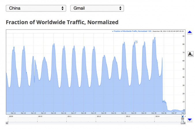 Статистика показывает, что доступ к Gmail в Китае был заблокирован. Фото: Google.com