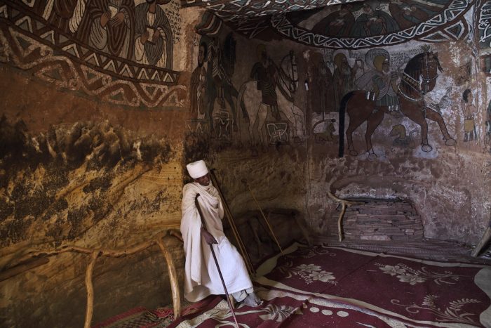 Монах отдыхает на фоне многовековых росписей в церкви Абуна Емата Гух. (Vladimir Melnik/Shutterstock)
